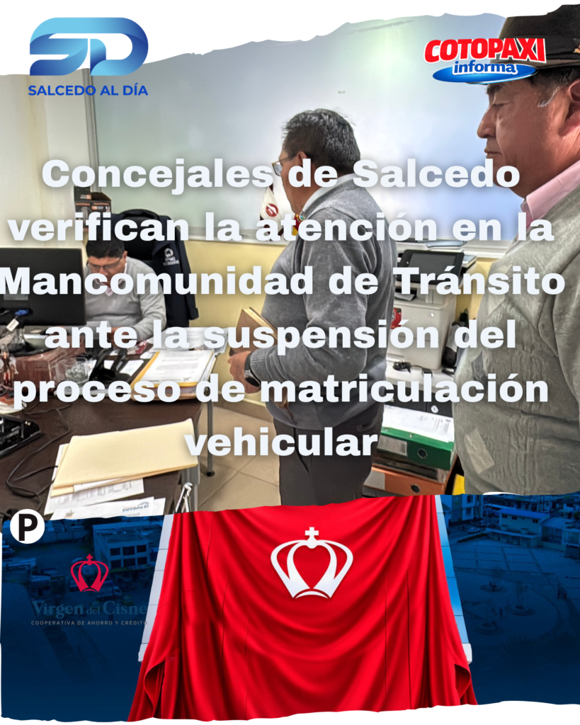 La paralización del proceso de matriculación vehicular en el cantón Salcedo motivó la presencia de concejales del GAD Municipal en las instalaciones de la Mancomunidad de Tránsito de Cotopaxi, con el objetivo de constatar la atención al público y recoger las inquietudes de la ciudadanía.