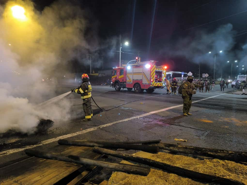 El personal militar ante la presencia de manifestantes, quienes tenían cerrada la vía principal mediante quema de llantas, procedieron a desalojarlos del lugar y coordinar con las autoridades competentes para sofocar el fuego provocado por los manifestantes.